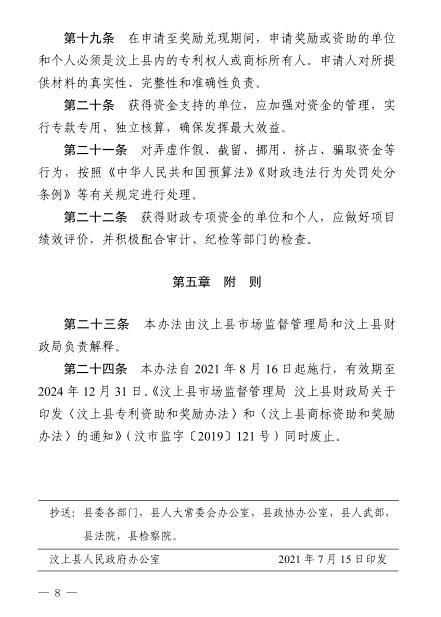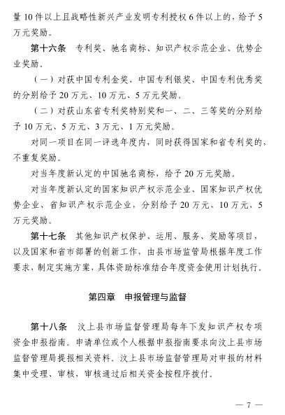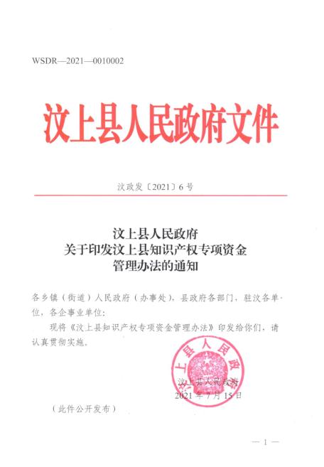 汶政發(fā)〔2021〕6號關(guān)于印發(fā)汶上縣知識產(chǎn)權(quán)專項資金管理辦法