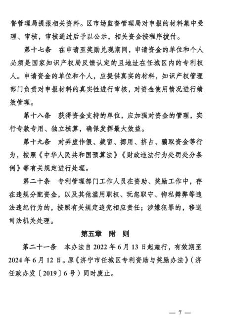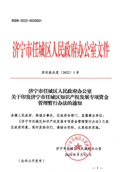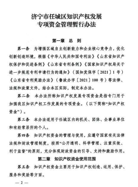 《濟(jì)寧市任城區(qū)知識(shí)產(chǎn)權(quán)發(fā)展專項(xiàng)資金管理暫行辦法》(濟(jì)任政辦發(fā)