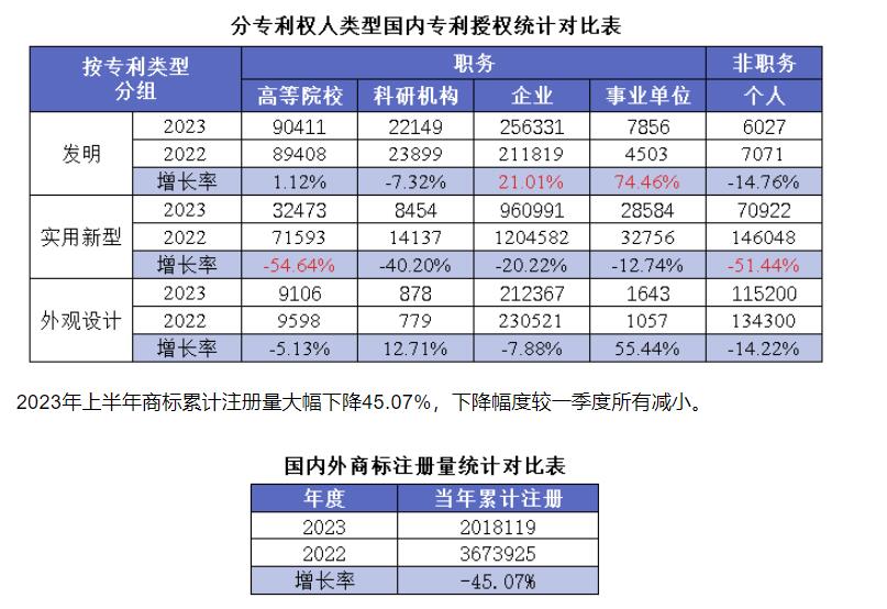 近日,國(guó)家知識(shí)產(chǎn)權(quán)局發(fā)布2023年上半年知識(shí)產(chǎn)權(quán)主要統(tǒng)計(jì)數(shù)據(jù),與2022年同期相比: