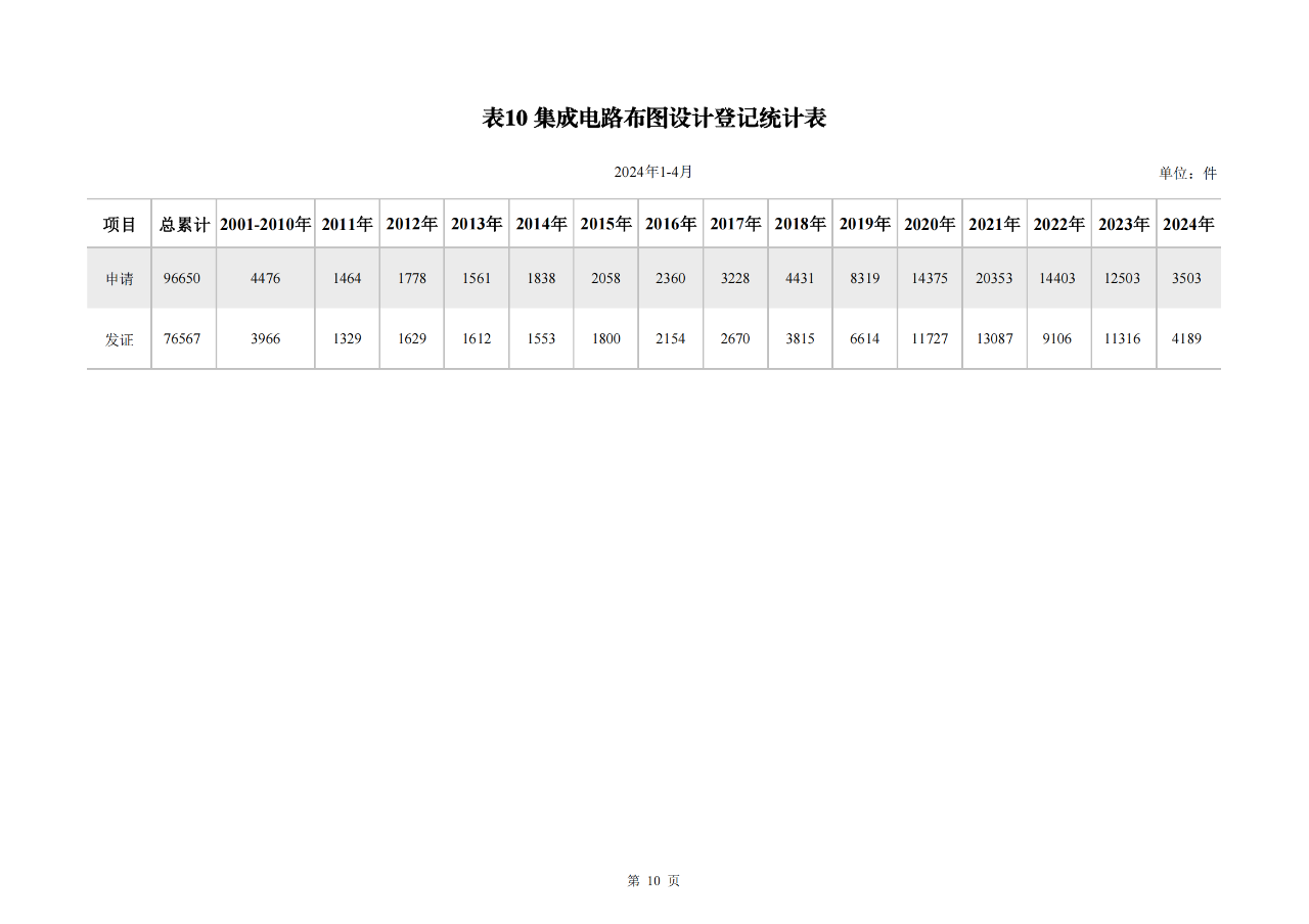 1-4月,我國(guó)集成電路布圖設(shè)計(jì)登記申請(qǐng)3503件;發(fā)證4189件。