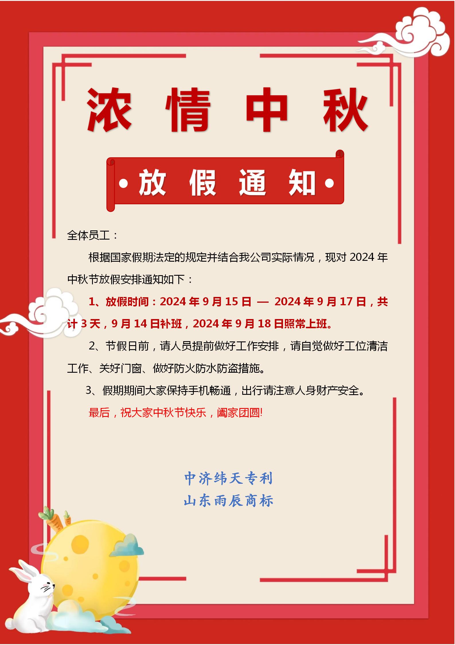 一、放假時間:9月15日(星期日)至9月17日(星期二),共3天,9月18日(星期三)正常上班。