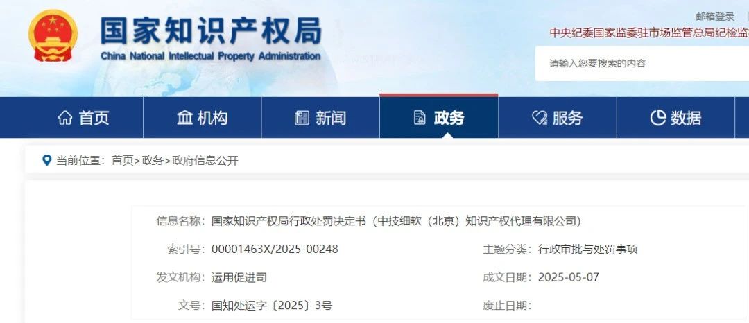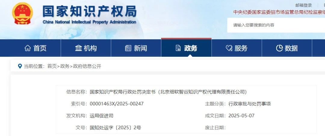 當(dāng)事人上述行為屬于《市場監(jiān)督管理嚴(yán)重違法失信名單管理辦法》第九條第(二)項例舉的“從事嚴(yán)重違法專利、商標(biāo)代理行為”,根據(jù)《市場監(jiān)督管理嚴(yán)重違法失信名單管理辦法》第二條、第十二條相關(guān)規(guī)定,決定將北京細(xì)軟智谷知識產(chǎn)權(quán)代理有限責(zé)任公司列入市場監(jiān)督管理嚴(yán)重違法失信名單,通過國家企業(yè)信用信息公示系統(tǒng)公示,并實施相應(yīng)管理措施。列入期限自2025年5月7日起至2028年5月6日。期滿一年后,當(dāng)事人可依據(jù)《市場監(jiān)督管理嚴(yán)重違法失信名單管理辦法》第十六條、第十七條規(guī)定向我局申請?zhí)崆耙瞥鰢?yán)重違法失信名單,停止公示相關(guān)信息并解除相應(yīng)管理措施。