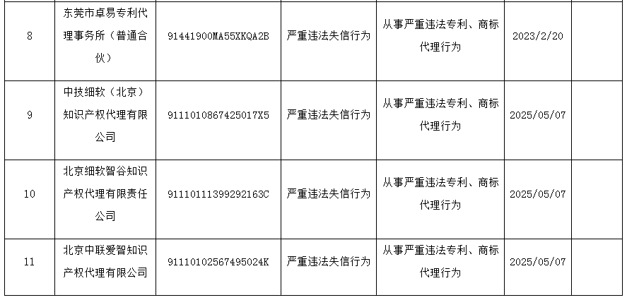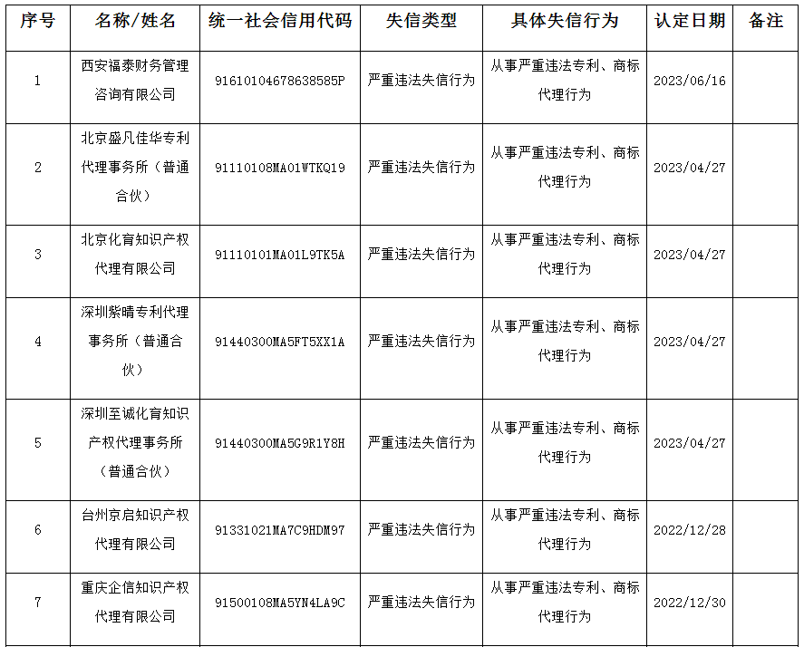 國(guó)知局公示:11家知識(shí)產(chǎn)權(quán)領(lǐng)域嚴(yán)重違法失信主體