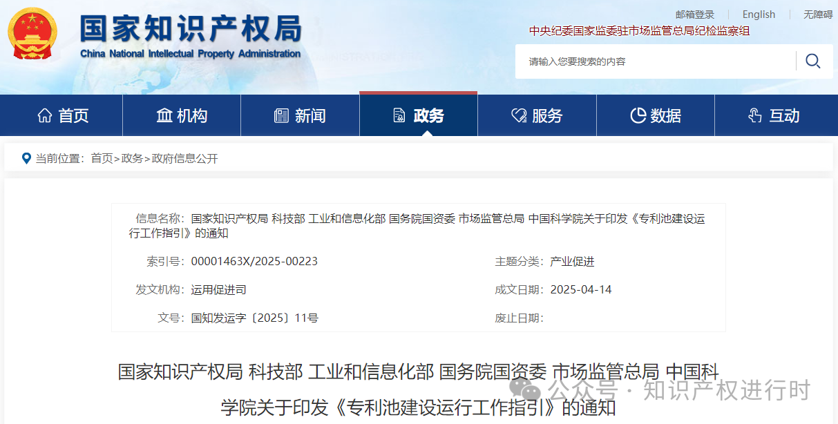 國(guó)家知識(shí)產(chǎn)權(quán)局 科技部 工業(yè)和信息化部 國(guó)務(wù)院國(guó)資委 市場(chǎng)監(jiān)管總局 中國(guó)科學(xué)院關(guān)于印發(fā)《專利池建設(shè)運(yùn)行工作指引》的通知