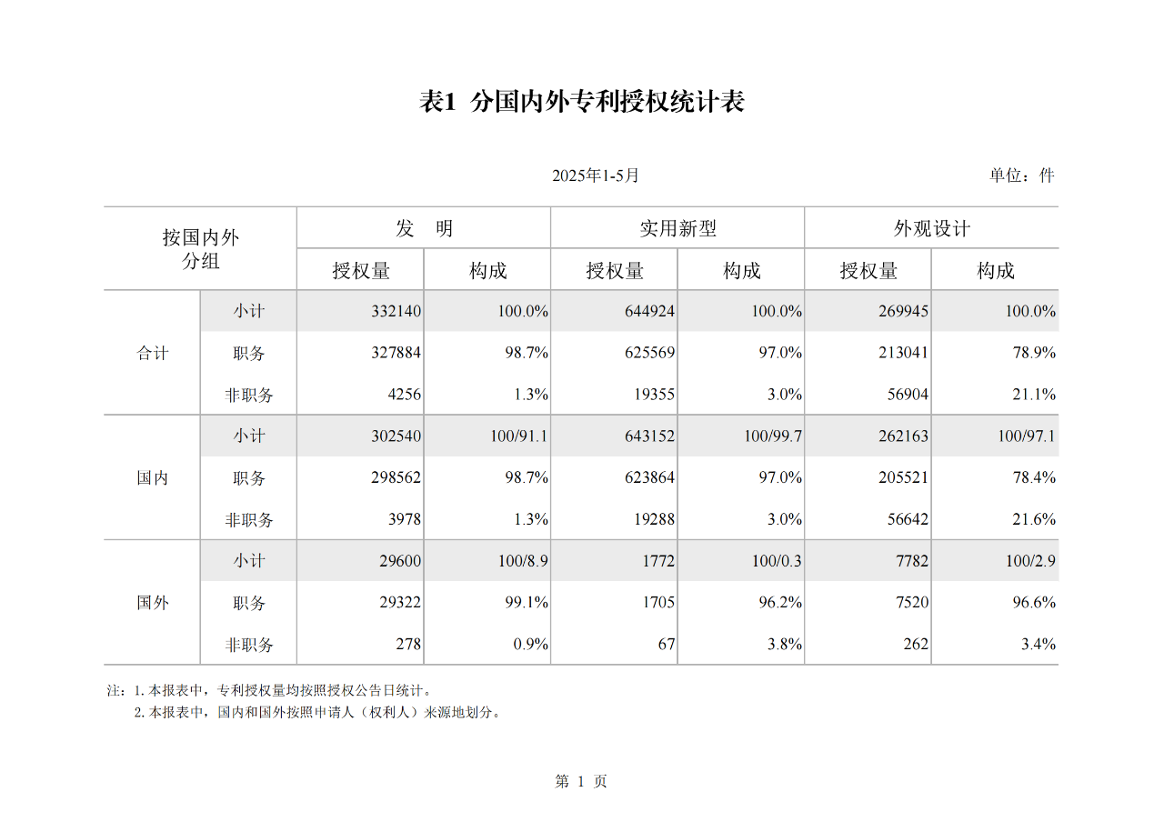 附:2025年5月國家知識產(chǎn)權(quán)局審查注冊登記統(tǒng)計(jì)月報(bào)