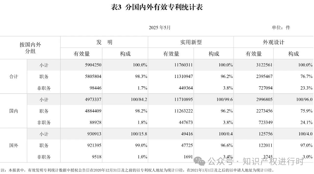 截至2025年5月,三類專利總有效量達(dá)2078.7122萬件。