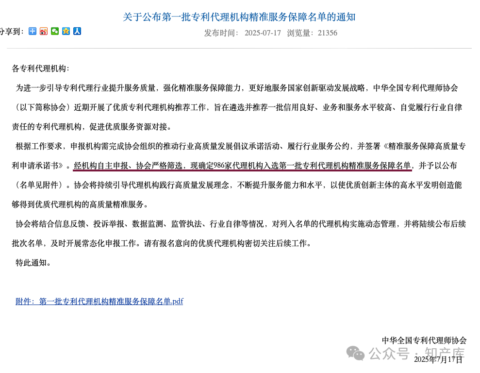 一、先是,7月17日、7月21日,全國(guó)專(zhuān)代協(xié)會(huì)連續(xù)發(fā)布兩批次“專(zhuān)利代理機(jī)構(gòu)精準(zhǔn)服務(wù)保障名單”,分別為986家、679家。