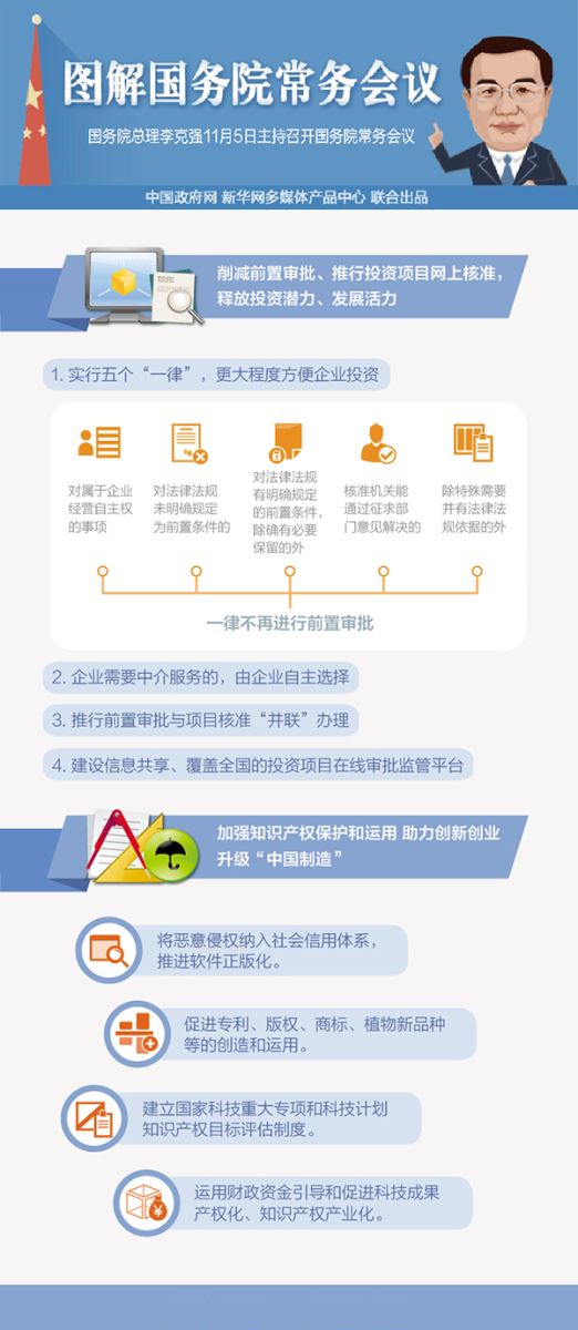 國務(wù)院總理李克強(qiáng)11月5日主持召開國務(wù)院常務(wù)會(huì)議,部署加強(qiáng)知識(shí)產(chǎn)權(quán)保護(hù)和運(yùn)用,助力創(chuàng)新創(chuàng)業(yè)、升級(jí)“中國制造”。