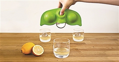 豆莢冰格 看上去就像個(gè)巨型豌豆莢,可以同時(shí)凍出3顆大號(hào)的球形冰塊。